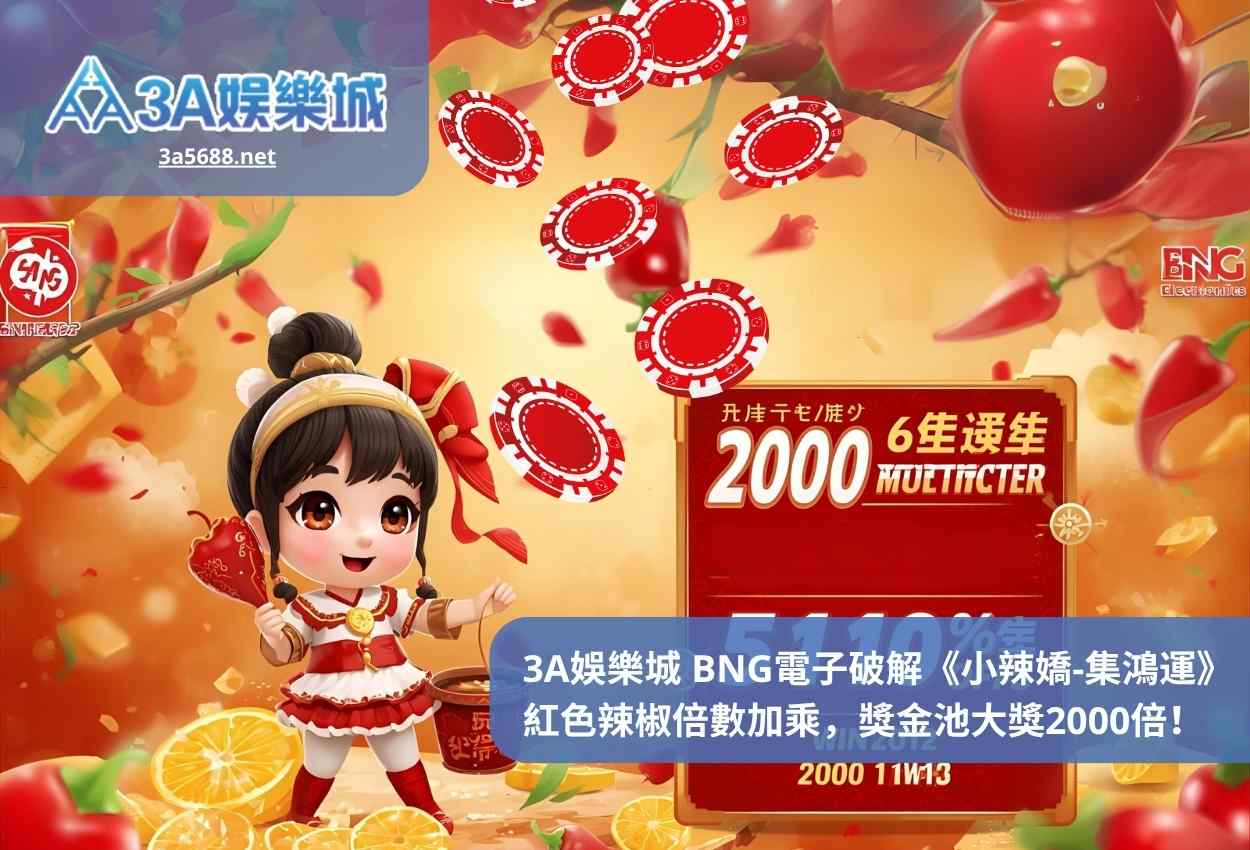 3A娛樂城 BNG電子破解《小辣嬌-集鴻運》紅色辣椒倍數加乘,獎金池大獎2000倍!